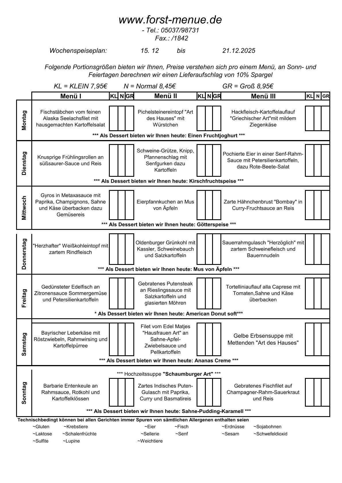 AllgemeinWochenplan KW51 15.12.2025 – 21.12.2025 Wochenplan KW51 15.12.2025 – 21.12.2025 Wochenplan herunterladen Wochenplan KW50 08.12.2025 – 14.12.2025 Wochenplan KW52 22.12.2025 – 28.12.2025